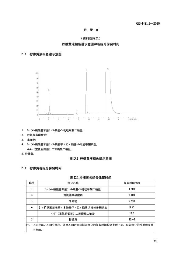 GB 4481.1-2010 食品添加劑 檸檬黃