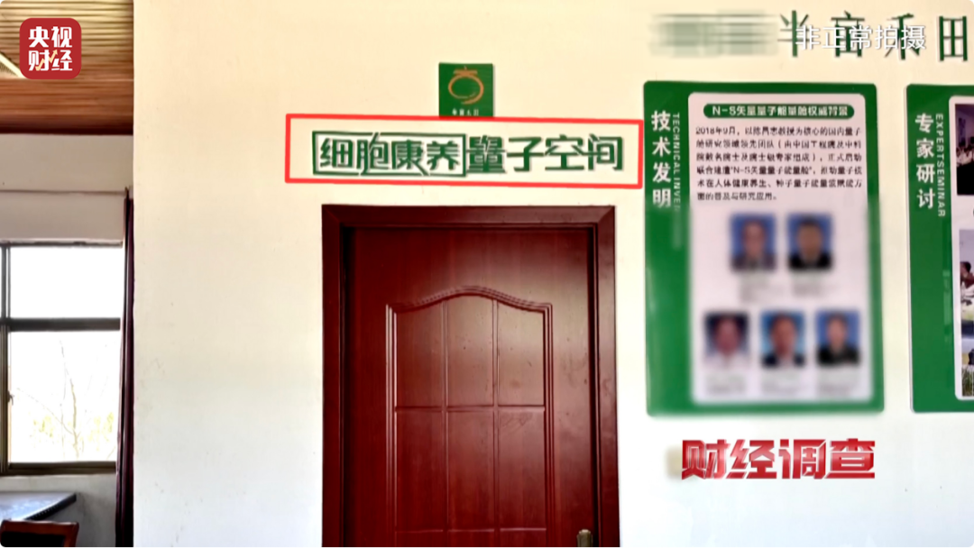 公司介紹稱,量子賦能技術,讓農作物產量增加30%以上,生長周期短,抗病抗旱抗澇,而且所有農作物都適用,五年來,沒有失敗的案例。離試驗田不遠的一處平房是半畝禾田公司的農業科學技術研究所,進入房間后記者看到,一扇門的上方寫著“細胞康養 量子空間”幾個字。韓總稱,這就是為種子賦能的量子能量艙。