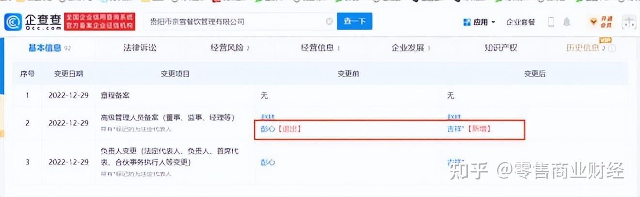 12月29日,貴陽市奈雪餐飲管理有限公司的法人代表由彭心變更為吉祥;