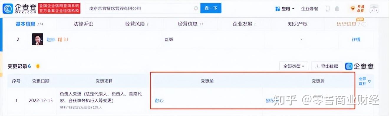 12月15日,南京奈雪餐飲管理有限公司的法人代表由彭心變更為邵東濤;