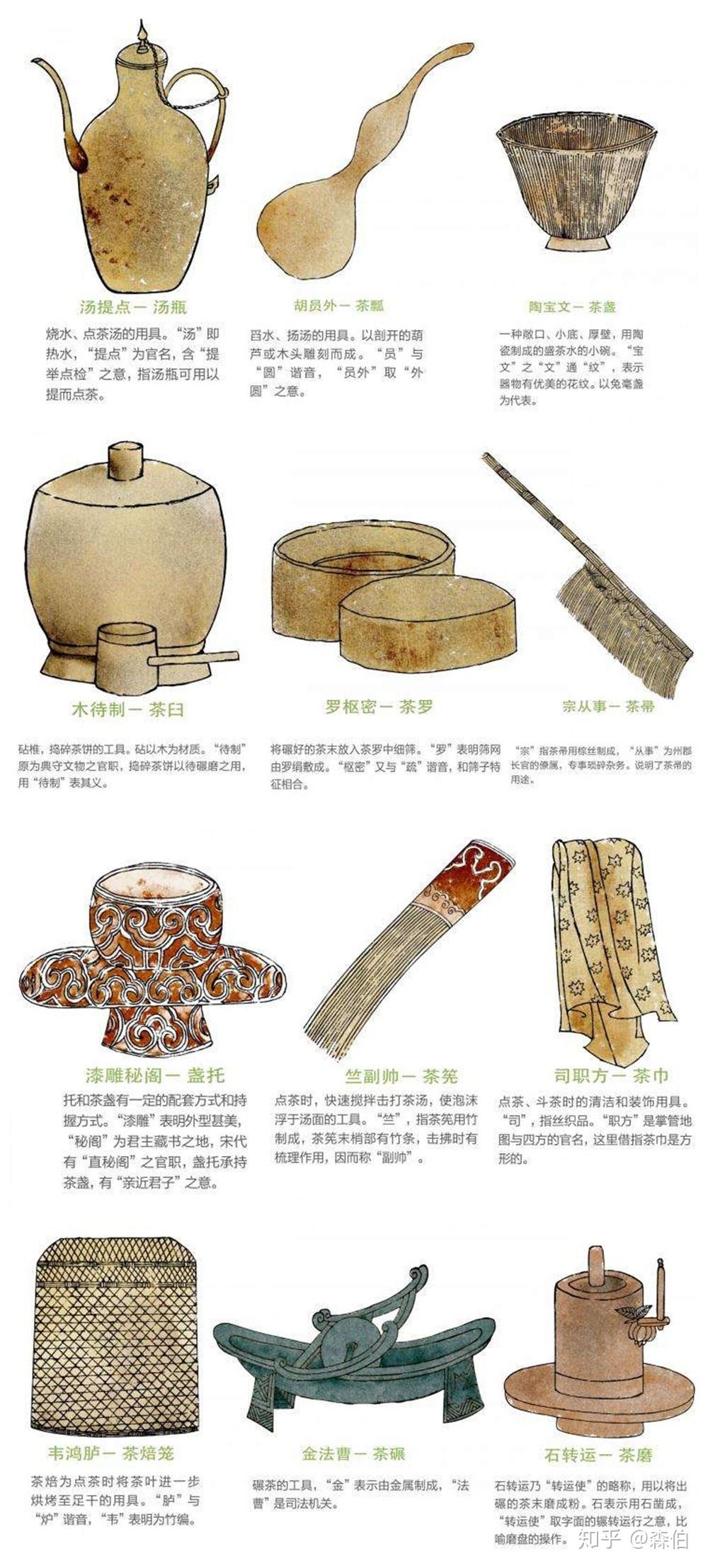 《茶具圖贊》中給十二件茶具賦予個性,依據茶具的作用、材質等特征,按照宋代的官制“授銜”,比如稱茶筅為“竺副帥”,名善調,號希點,號雪濤公子。