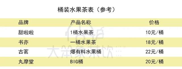 入夏,桶裝水果茶是被各大品牌一擁而上。(不止以下品牌,僅列舉幾個而已)