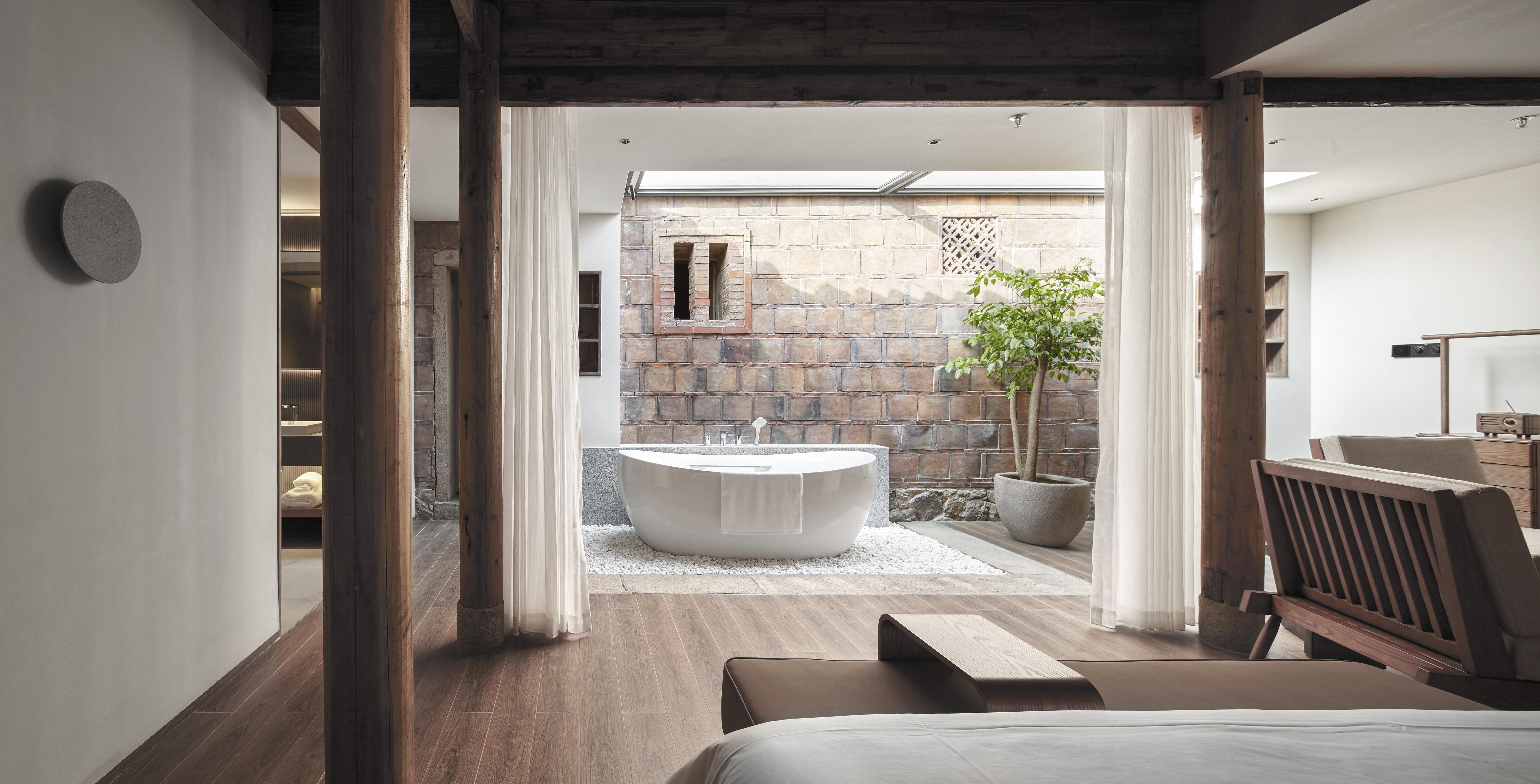 在梧林傳統村落里,青普文化行館在延續高品質人文度假體驗的基礎上做出了二次迭代的新模式,與住宿空間1:1空間面積的核心文化體驗公共空間得到極大延伸,從原本的行館內延展至整個村落,構建出多個不同主題的新零售復合體驗空間,讓建筑、節慶、民俗、現代與傳統生活方式散落在60000多平米的梧林的每個角落,“就像是一個被拆開的魔方。”