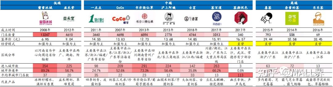 中國現制茶飲低/中/高端市場代表品牌競爭策略: