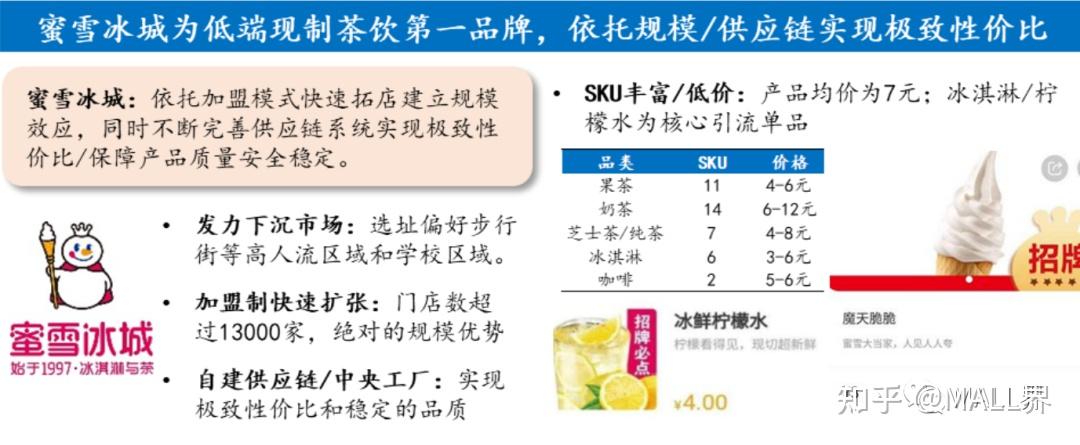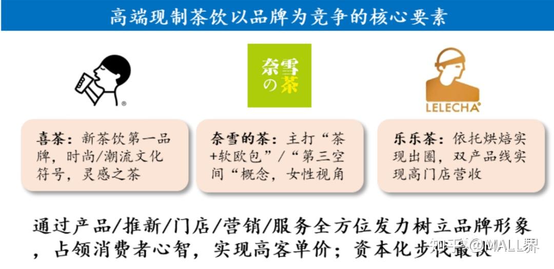 高/中/低三個價格檔形成差異化競爭。1)低端市場:依托加盟模式快速擴張,搶占 下沉市場;選址主要集中在商業街/學校等人流量大的區域;頭部企業依托規模效應 /供應鏈實現極致性價比。2)中端市場:各品牌打法各異,競爭呈區域化/差異化, 主要競爭策略包括區域加密形成區域內的規模效應,以及深耕細分品類,打造品類 龍頭。3)高端市場:主要依托直營模式擴張,門店仍主要集中在一二線城市,選址以核心商圈/購物廣場的黃金鋪面為主,通過產品/推新/場景/營銷等全方位發力形成 品牌護城河,占領消費者心智,進而形成品牌溢價。目前喜茶/奈雪的茶在品牌知名 度/門店覆蓋范圍上已經與其他高端品牌拉開差距,同時開始依托品牌勢能推動業態 多元化/品類外拓;受到資本青睞,借力資本市場進一步鞏固市場地位。