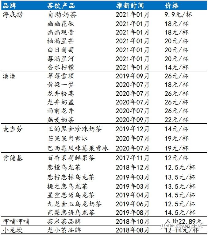 此外,餐飲品牌開發茶飲品牌/零售業態兼營茶飲成為行 業趨勢,近年來湊湊/海底撈/呷哺呷哺/肯德基/麥當勞/小龍坎等餐飲品牌均有現制茶 飲產品甚至子品牌推出;具有 2000 余家連鎖超市的便利蜂入局茶飲,在連鎖店中開 設 7 平米飲品站,取名“不眠海”;“郵氧的茶”奶茶店在福建福州市的郵政大藥房下開張(此前中國郵政已在廈門試水咖啡業態)。