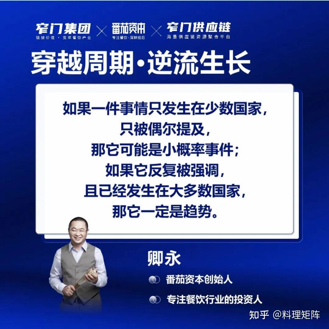 此外,卿永還在演講中講到,結合Z時代、老齡化、丁克等社會現象,朋克養生、高附加值的健康餐飲、一人食等新模式,或可面向新人群,創造新價值。