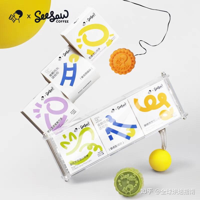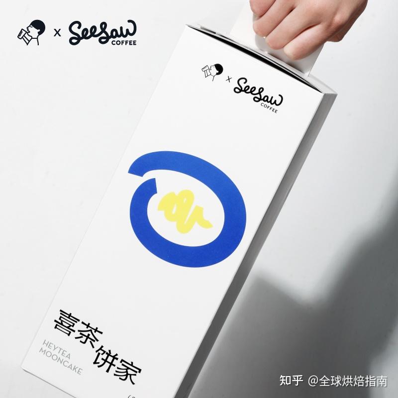 今年奶茶界的頭部品牌喜茶和咖啡界的熱門頭部品牌Seesaw做了聯合,出了一款月餅,以“偷月亮”為創作靈感,做出了更為年輕化的禮盒設計。