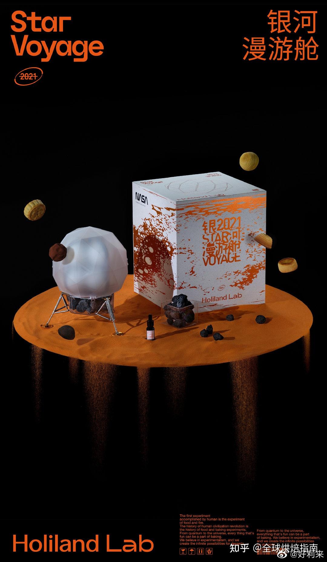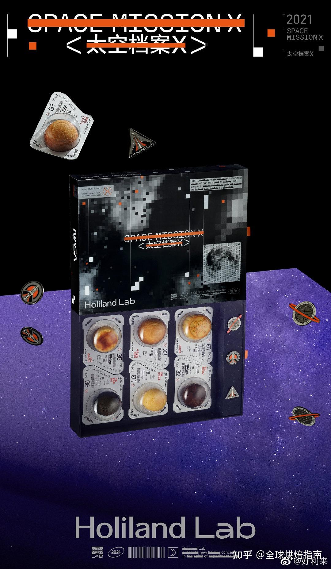 好利來LAB「宇宙漫游」系列:以漫游宇宙為靈感,與NASA聯名,對月餅外形、口味、以及包裝都做成了探索宇宙月球的設計(6枚裝/盒、基礎款208元/盒、禮盒款646元/盒)。