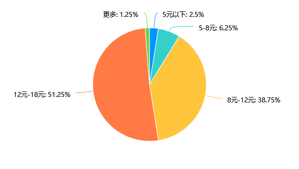 選項小計比例5元以下22.5%5-8元56.25%8元-12元3138.75%12元-18元4151.25%更多11.25%本題有效填寫人次80