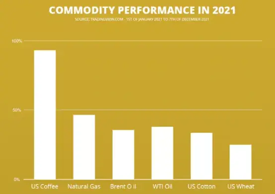 截至12月10日,美國ICE洲際交易所阿拉比卡咖啡期貨主力合約年累計漲幅超過83%,成為2021年價格上漲最多的大宗商品。