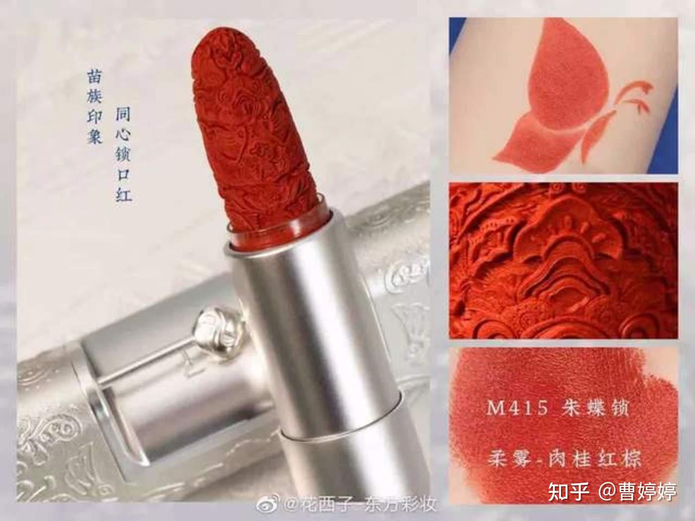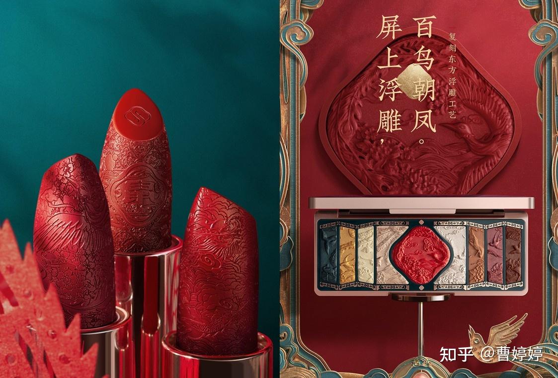 2019年4月,花西子推出將微雕工藝搬到口紅膏體上的“花隱星穹雕花口紅”,名字雖中二但好在細節精致。同樣類型的還有去年年末浮雕既視感的“百鳥朝鳳盤”,以及今年的同心鎖禮盒、苗族禮盒等。