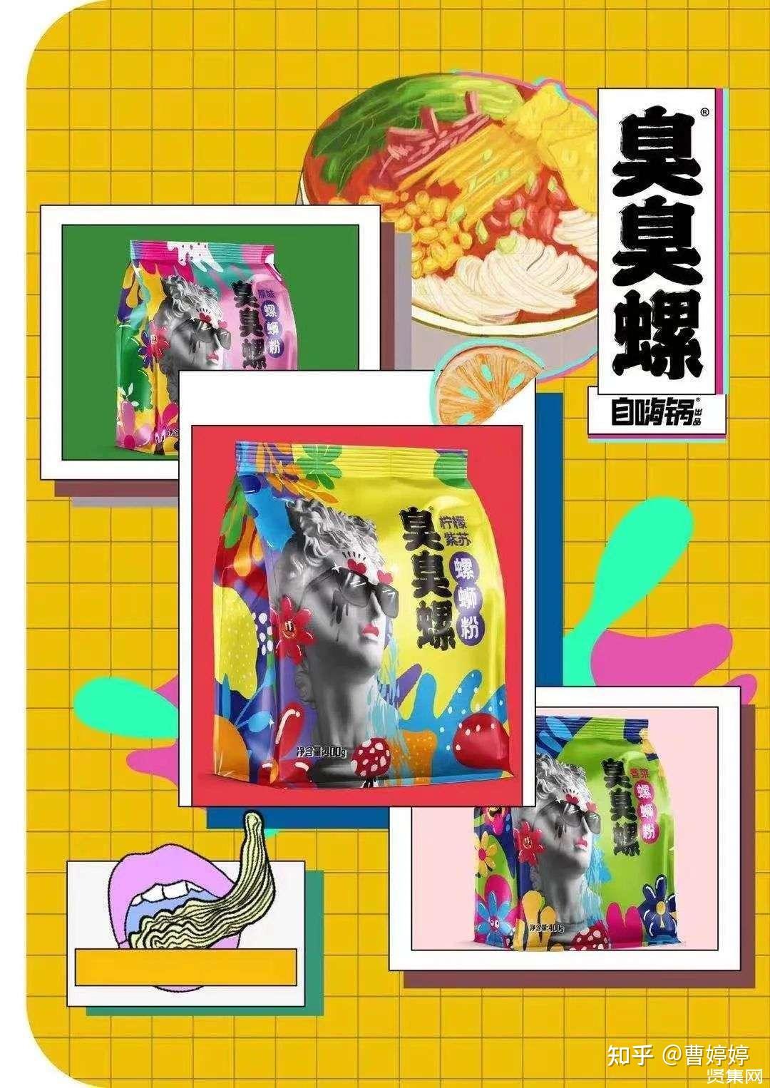 「臭臭螺」進行更精準的洞察,最終將自身品牌的目標受眾鎖定在18-34歲的女性群體,她們熱愛生活,追求品質與不同,關注自我,愿意為喜好買單,與「臭臭螺」自成一派的品牌調性契合度相當高。「臭臭螺」在包裝設計上的大膽用色皆滲透著其對年輕一代流行文化的深入洞察,以西方石膏雕像作為自我風格故事的感性表達載體,用波普藝術風作為摩登態度的演繹方式,為產品帶來新的記憶點。東方美味與西方藝術撞出反差感,也撞出吸睛的驚艷效果,在消費客群心中留下直觀且難忘的視覺印象。