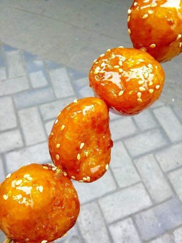 這個是奎星樓街一大特色,以前是位老爺子推著車車每天下午4點準時出來賣,現在已經有店鋪了。糖油果子趁熱的時候吃,外酥里軟的,就是一串下去還是比較“扎實”,胃口小的可能直接就飽了,想多吃點其它美食的可以選擇買兩個人買一串分著吃。