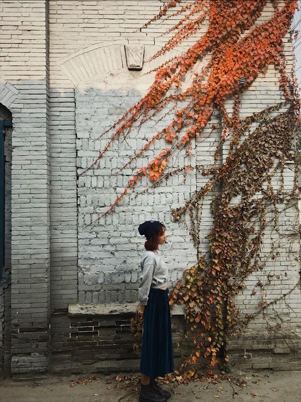 朱紅色的墻體能將膚色抬高好幾個度!!!而且行道的法國梧桐跟墻體共同營造出溫暖的氛圍,讓時光和陽光都變得很溫柔。(我這個豬精女孩變得溫柔又幼稚)