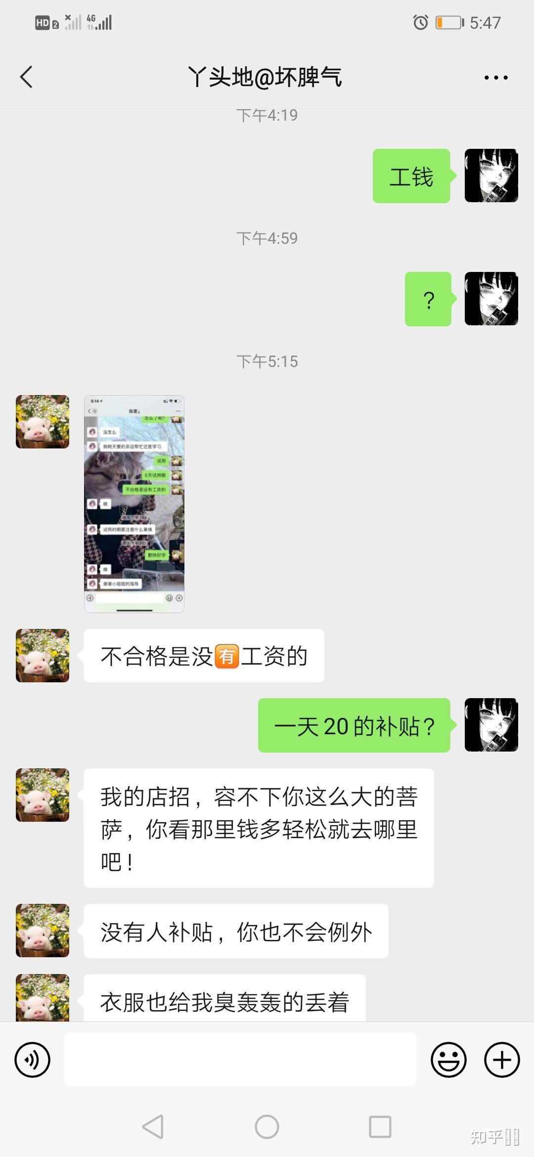 就無語,她發的聊天記錄是和剛剛招的新人定的規矩,為了反悔就想把這個規矩套在我身上。。。。。橫豎就是不給錢的意思,勸告給位在店里打工小心點。