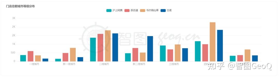 茶百道、滬上阿姨格網統計分析 圖源:GeoQ Ana 品牌分析擴展模塊另外,除了在核心直轄市和省會城市布局,滬上阿姨也在逐步滲透低線城市,進一步打開下沉市場。