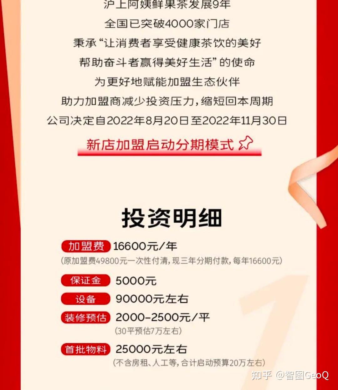 對比同等規模茶飲品牌20000-90000元不等的的加盟費,此次滬上阿姨發布的全新加盟政策在“省錢”方面有一定力度。