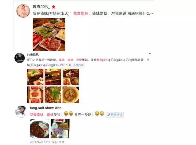 我們發現消費者在2011-2018年這段時間,會無意識、自發的使用一個超級句式來表達對傣妹火鍋的熱愛,那就是——“我愛傣妹,傣妹愛我” 。