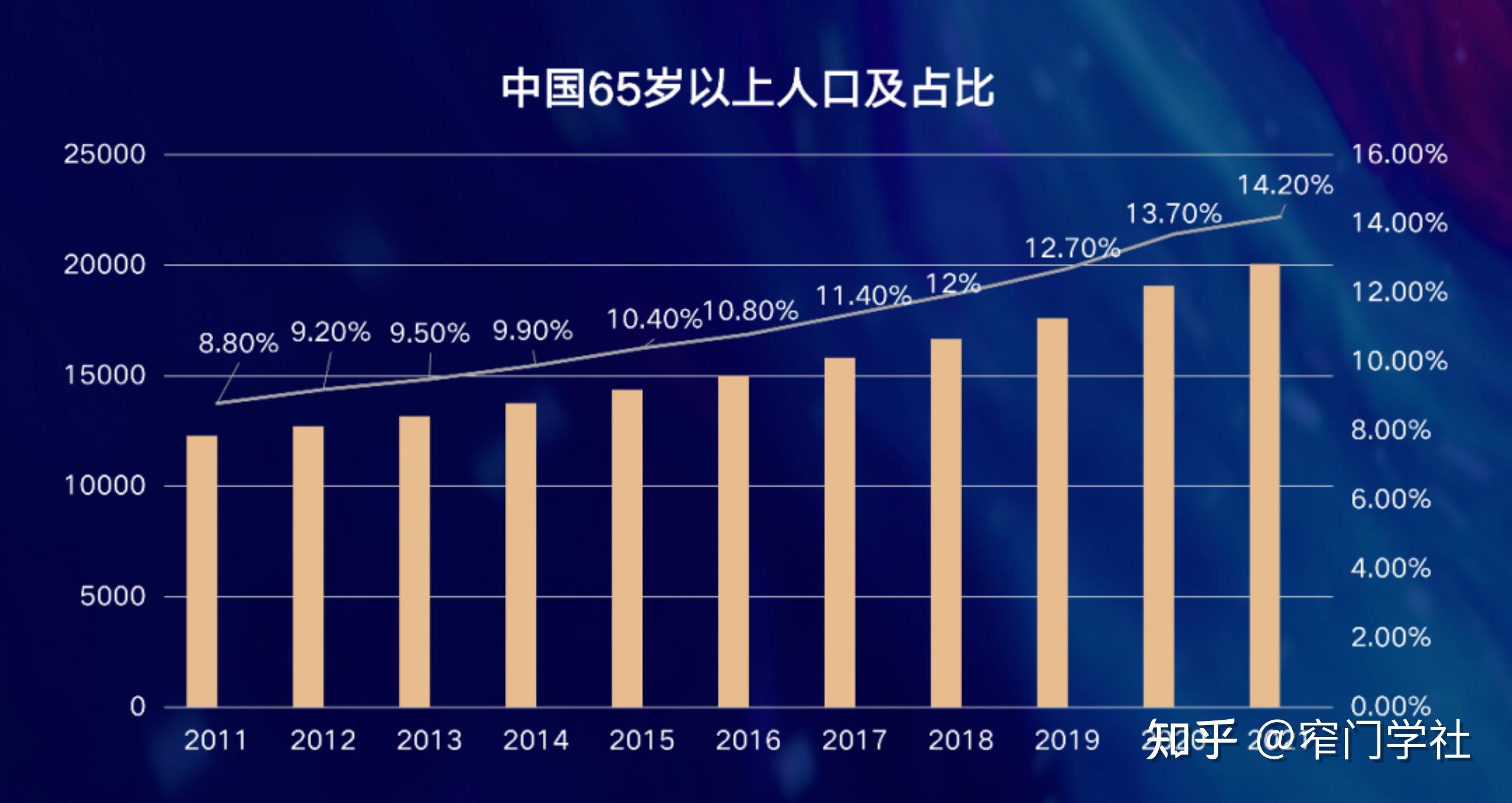 按照國際通行劃分標準,當一個國家或地區65歲及以上人口占比超過7%時,意味著進入老齡化;達到14%,為深度老齡化;超過20%,則進入超老齡化社會。按照這個標準,2021年,我國已經進入到深度老齡化社會。