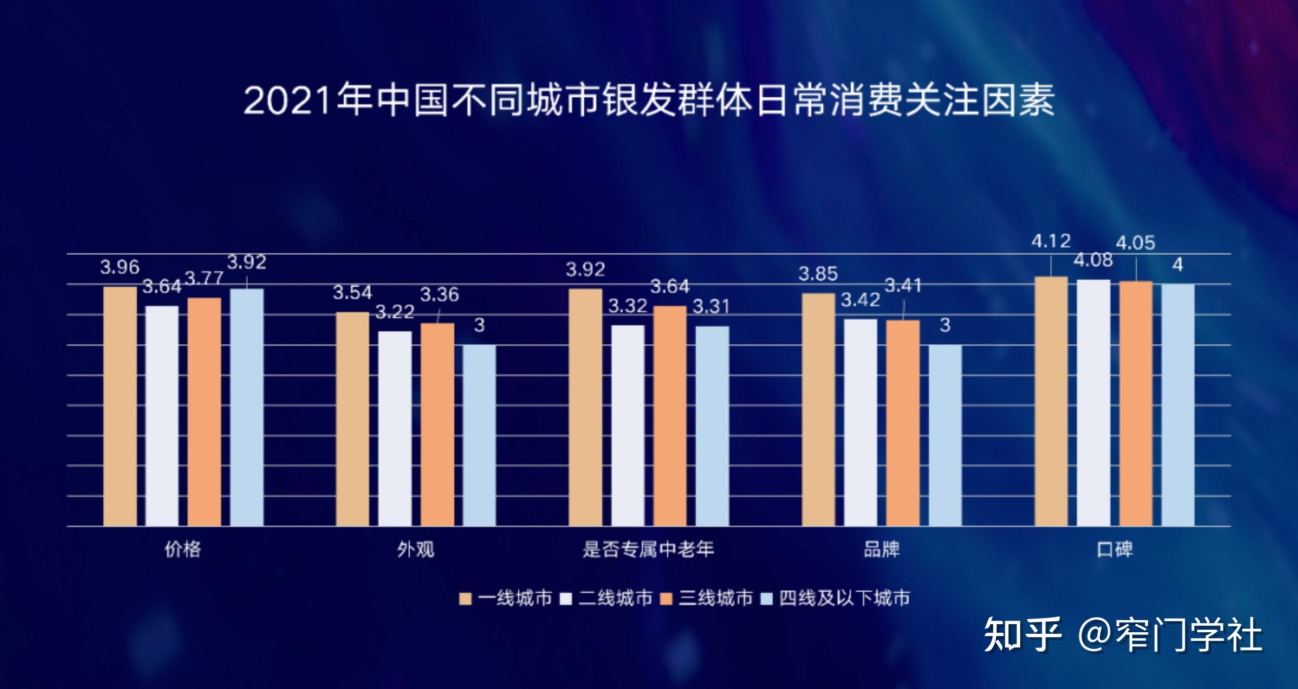 通過觀察,我發現銀發族有這些消費習慣:一線城市銀發族在日常消費時,對各維度都需要綜合考量,而四線及以下消費者幾乎只關注物品的口碑相傳和價格,更關注性價比。