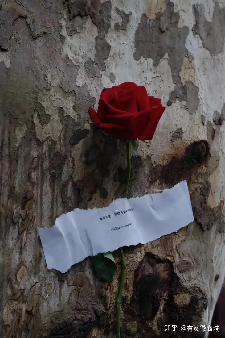做這件事的發心是,品牌小伙伴覺得雙11的購物氛圍太濃,想要在這個環境里做一些不一樣的事情,告訴消費者,雙11除了網上購物它還是光棍節。所以組織了這個線下快閃活動,我們把一些話寫在小紙條上,和花一起貼在城市角落,希望給這座城市制造點浪漫。