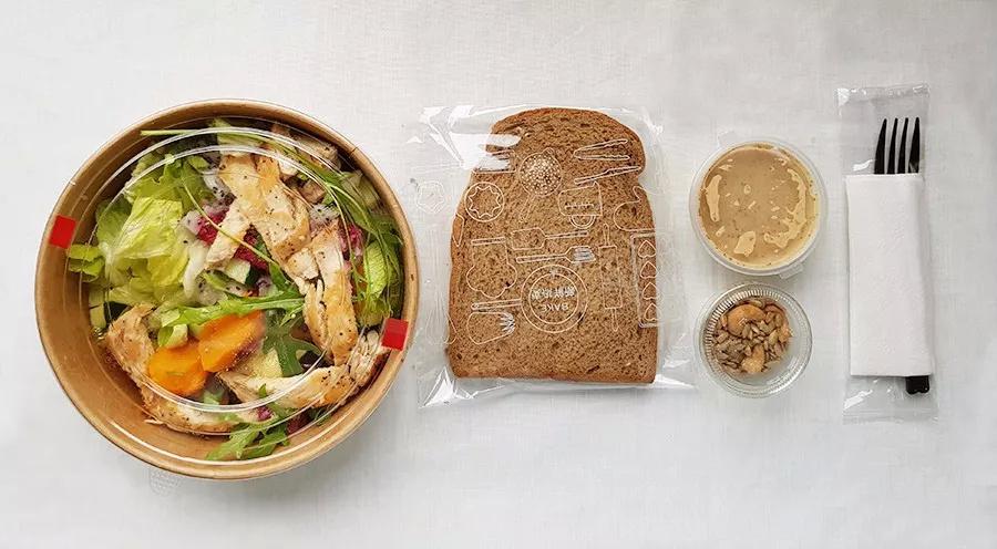 一份沙拉里菜的種類蠻多的,就是不過火龍果的搭配有些奇怪,不知道可不可以備注去掉。另外這片面包難吃,和寶蔬沙拉里沒熱過的皮塔餅有一拼。