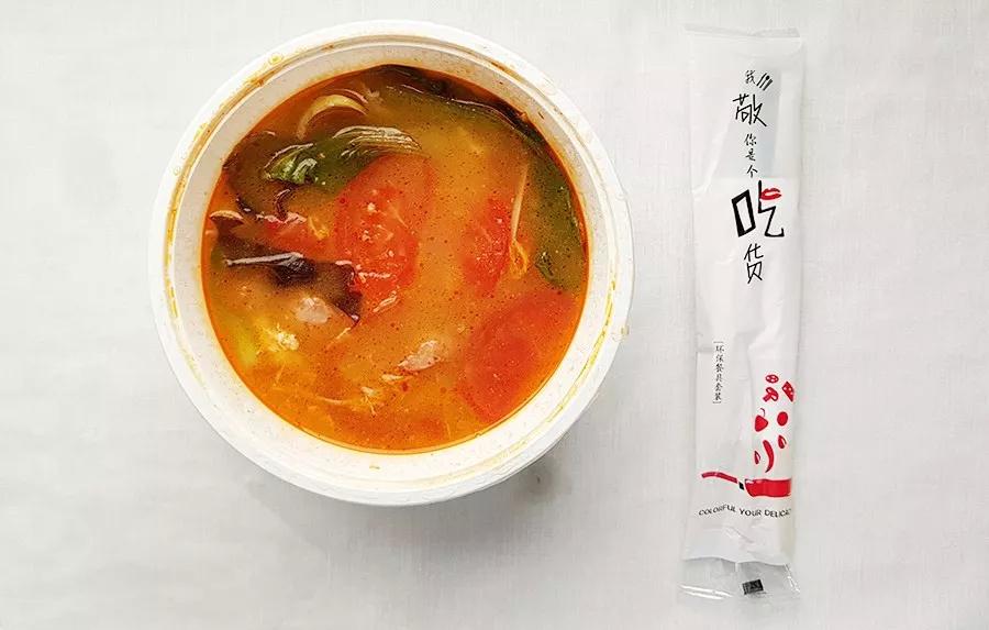 很普通,就自己宅在家里時,搜刮冰箱剩料扔一起煮一煮,加一碗米飯的感覺。