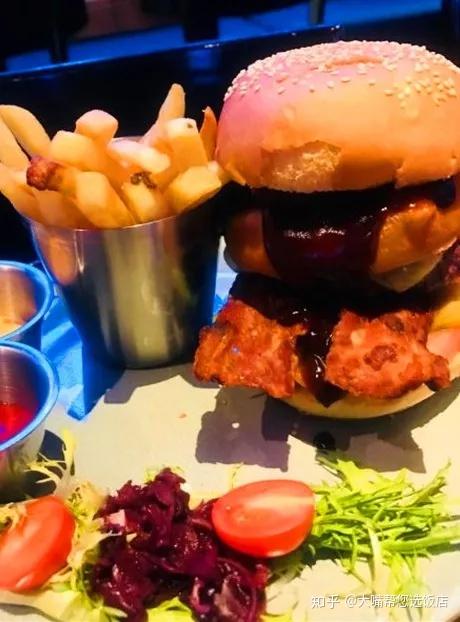 環境溫馨舒服的美式餐廳,漢堡和雞尾酒都很出名。那一份滿當當的漢堡,大的快溢出來的肉餅,手握著都沉甸甸的,加上薯條、蔬菜,著實能讓小伙伴驚呆啊!中間還有清冽爽口的青椒圈兒和生菜片兒,豐富的口感怎么吃都不膩。