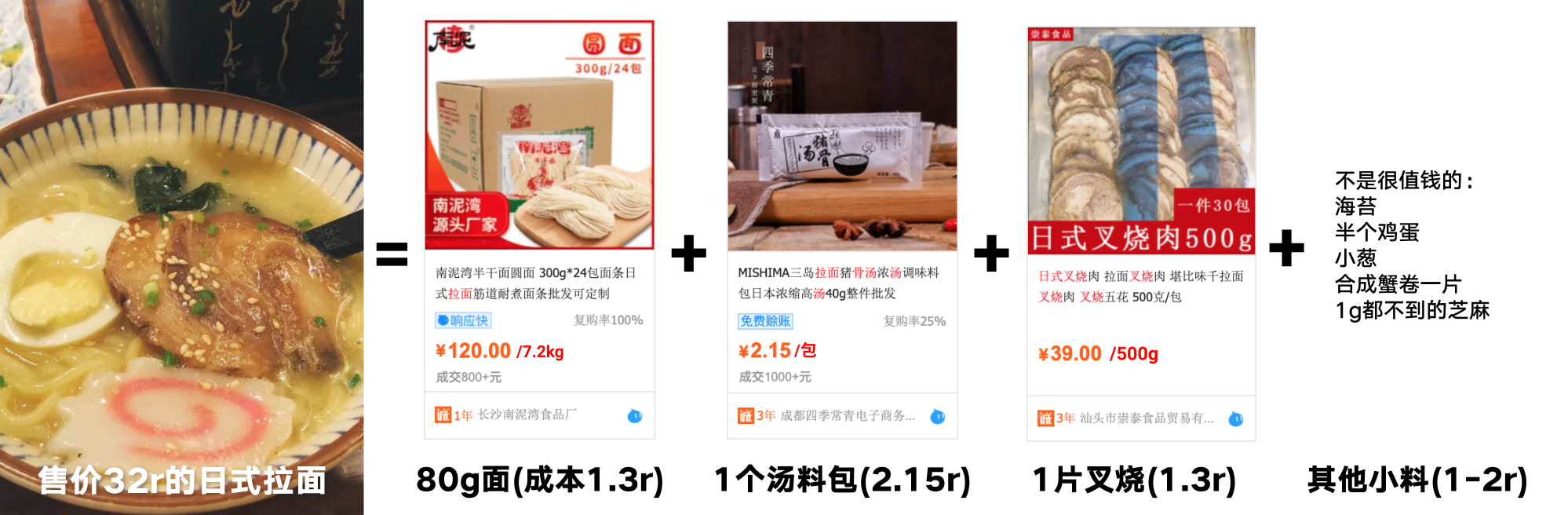 無利益相關,所以在這篇回答里不詳細聊店的人工費、凈利潤什么的,只是拿食材成本和在外售價做個比對。且價格為小批量拿貨價,餐飲行拿貨比本回答內價格只可能更低。