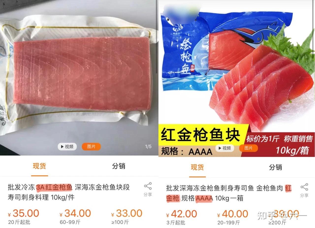 7. 金槍魚金槍魚的價格和品種強相關:黃鰭金槍魚<大目金槍魚<藍鰭金槍魚<<<野生藍鰭金槍魚。長腰和長鰭金槍魚也是低價品種,但是比較少見(這貨才是真·白金槍魚)。