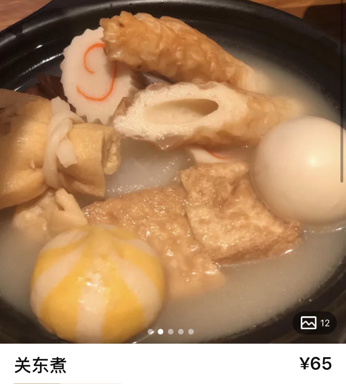 下圖關東煮=出汁粉+冷凍丸子+雞蛋。身價更不得了了,敢賣65也是店家的本事。