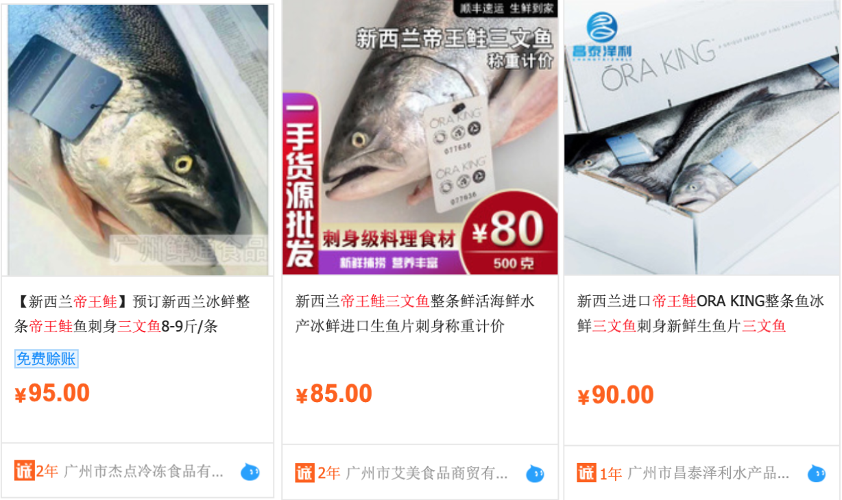 但其實帝王鮭的價格天花板還不及藍鰭金槍魚的一半,價格基本都在80-90/斤這個區間內。