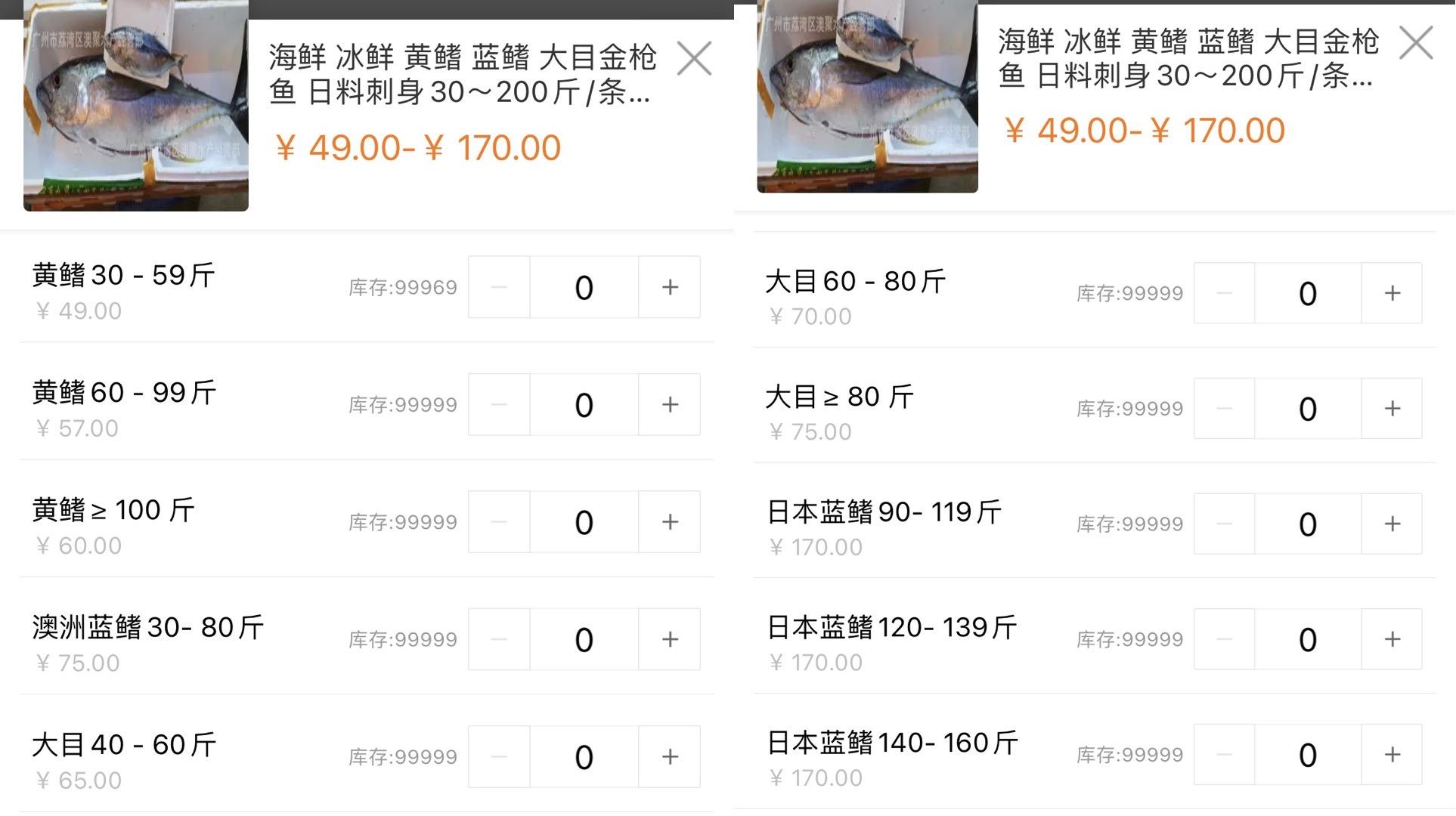 冰鮮黃鰭和大目價格其實也并不高,由于肉質含水量高、難儲存,商用主要流通的依舊是超低溫金槍魚。