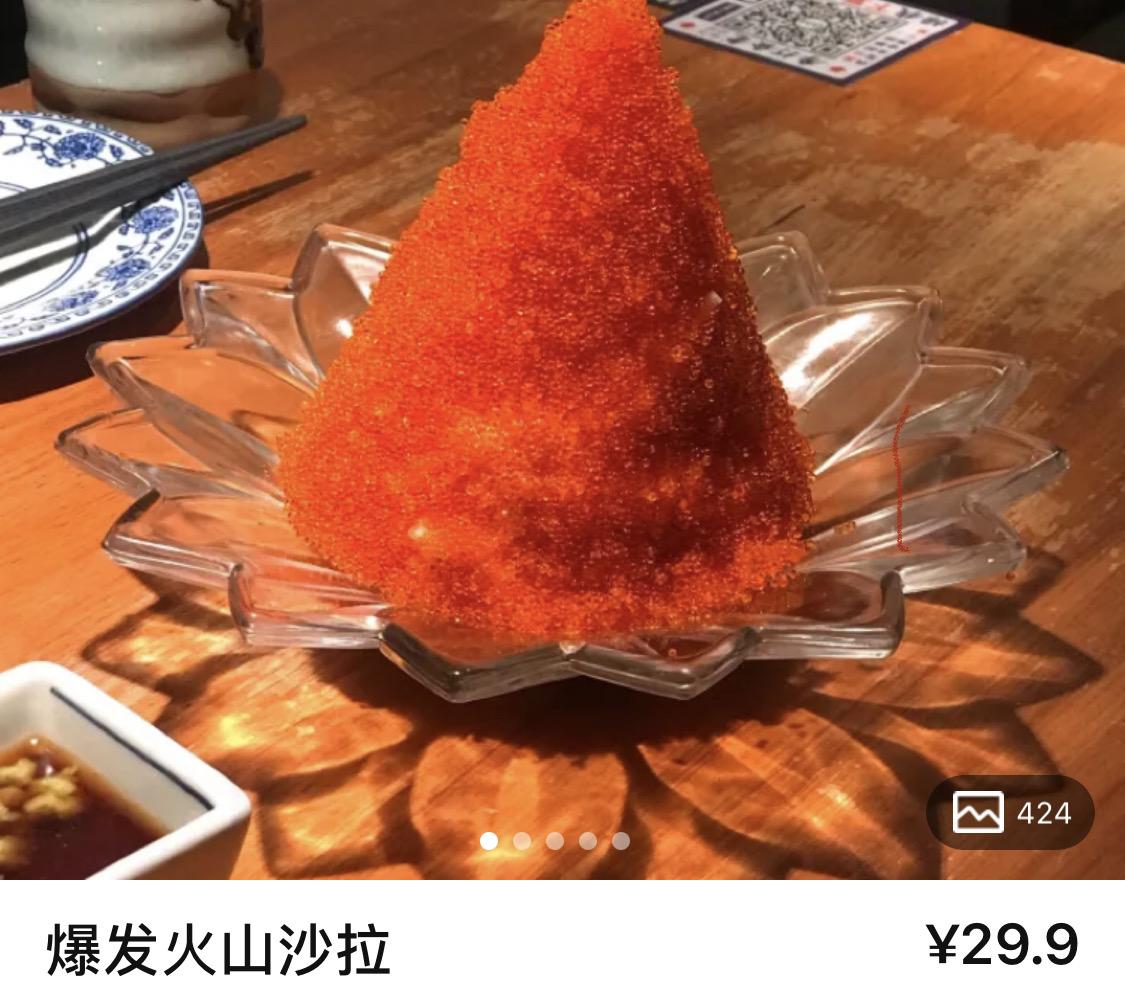 這道菜的成本構成占比較大的是經常被誤稱為蟹籽的飛魚籽,1kg的拿均價130/kg。即使一盆火山沙拉需要用到100g飛魚籽,成本也僅需約13塊。順帶一提,這種飛魚籽幾乎都有染色處理,橙色是比較常見的,還可能被染成綠色、黑色、黃色。