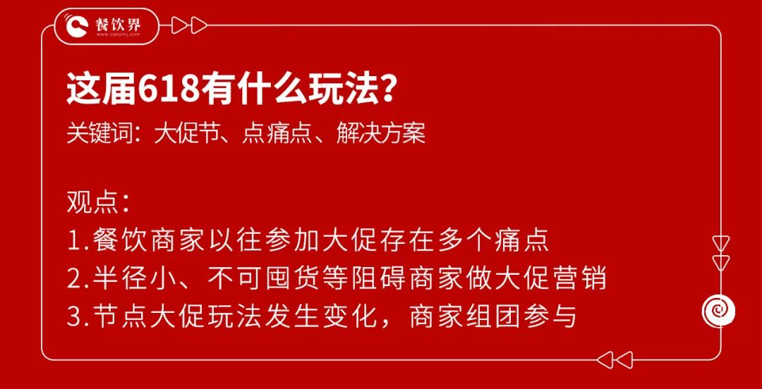 在和眾多餐飲人交流的過程中,餐飲界(canyinj.com)發現了餐飲商家以往參與全民大促存在的一系列