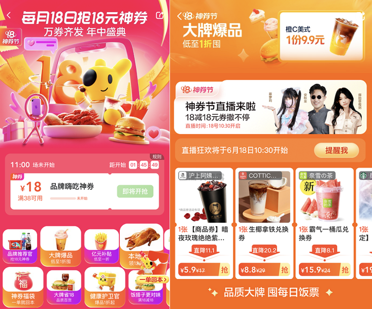 3折起的海底撈、老鄉雞、星巴克、奈雪的茶等100多家大牌餐品……明星造勢,大牌牽頭,今年的“餐飲”6.18,來勢洶洶!
