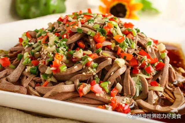 溫拌腰絲是由唐代羊皮花絲演變而來,因用豬腰子和其他輔料、調料、以及溫拌的方法制成而得名,是陜西西安著名的傳統特色菜。由于刀工細致,烹調方法考究,制作出的菜肴腰絲脆嫩,姜香、蒜香以及花椒的香味相得益彰,味道濃醇,清爽利口。溫拌腰絲取材尋常之物——豬腰子,經過廚師妙手精心烹飪,再輔以特色的“溫拌”,色香形美,味道濃醇。溫拌腰絲被中國烹飪協會、陜西省商務廳評選為“陜西十大名菜”,還被中國烹飪協會評選為“中國菜”陜西十大經典名菜。