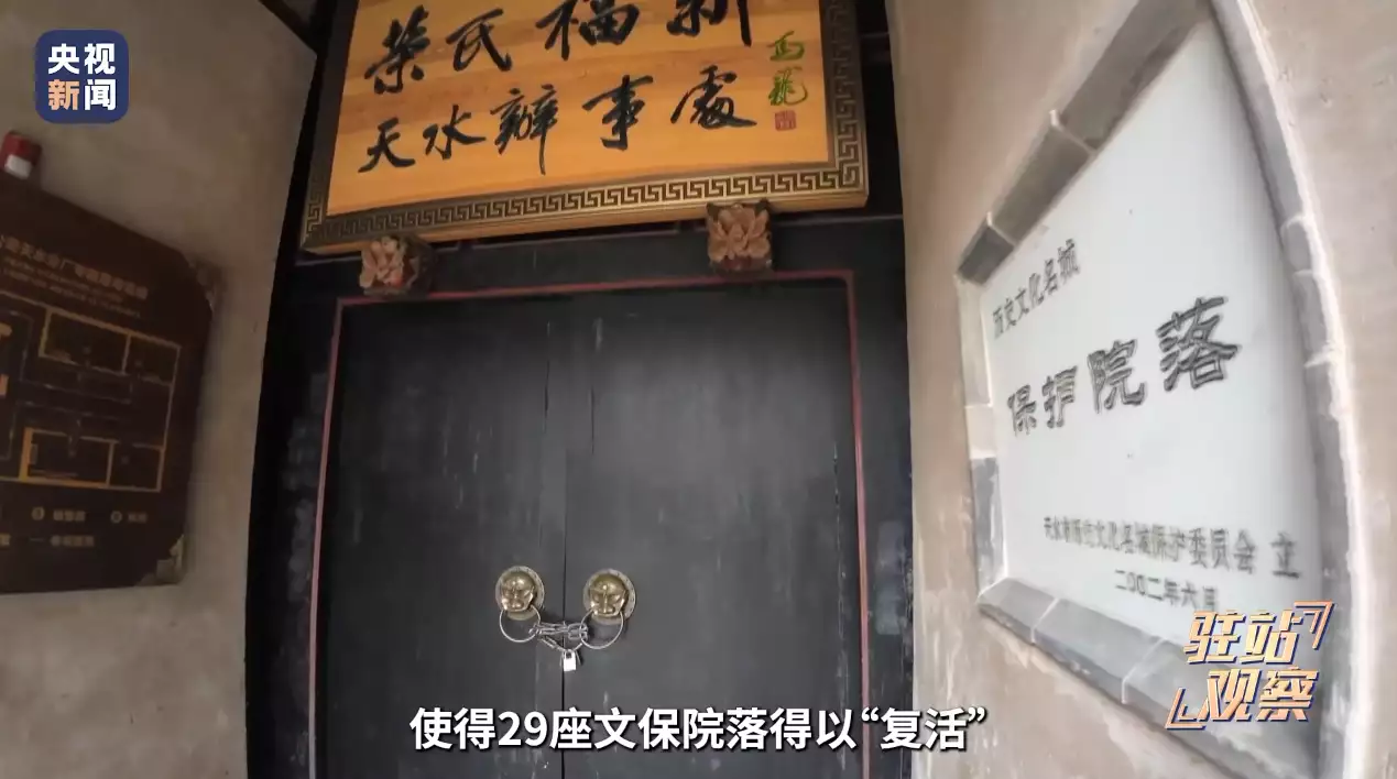 ↑天水古城內的文保院落 央視新聞截圖
