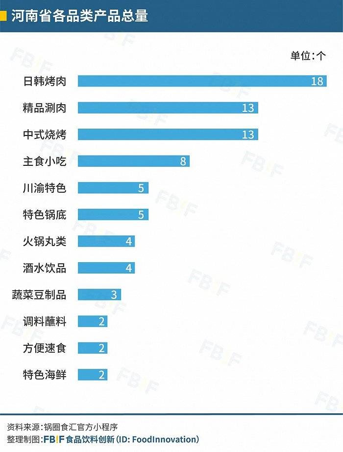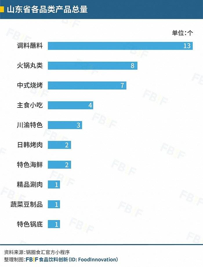 提供產品最多的河南地域供應商,主要生產日韓烤肉、精品涮肉和中式燒烤。有31款肉類產品來自于河南,份額達到約61%。山東、江蘇地區的供應商則都為鍋圈提供了13款調料蘸料。福建地域的供應商提供火鍋丸類最多,有17款產品。四川省的供應商分別提供了7款特色鍋底產品、4款調料蘸料和3款川渝特色。(滑動查看所有圖片)