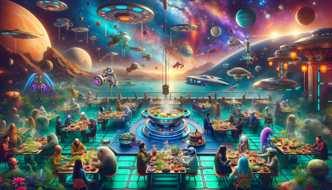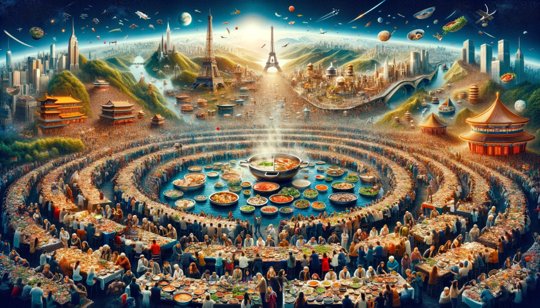最近幾天特別流行用GPT-4畫“more and more”風格圖畫。這么好玩誰不畫?小編今天讓GPT-4畫吃火鍋了,畫到最后,發現原來整個宇宙其實就是一個大火鍋。GPT還給小編展示了平行宇宙的樣子。 以下為原版全程溝通作畫記錄。 You(小編) 幫我畫一幅一家人冬天吃火鍋,其樂融融 ChatGPT 這幅畫描繪了一家人在冬天一起享受火鍋的溫馨場景。家庭成員圍坐在餐桌旁,共享著熱氣騰騰的火鍋,畫面充滿了歡聲笑語和溫暖的氛圍。希望這幅畫能夠捕捉到您所期望的場景。 You 嗯,桌上的菜不夠多,吃火鍋要涮很多種類菜和很多盤肉,你不會不知道吧? ChatGPT 您的建議很中肯,火鍋的確是關于豐富多樣的食材和滿桌的美味。我理解您希望看到一個更加傳統和真實的火鍋場景,包括各種菜品和多盤肉類。讓我重新創作一幅畫,展現一個更加充滿各種食材的火鍋場景。 這幅畫更加生動地展現了一家人在冬天享用豐盛火鍋的場景。桌上擺滿了各種火鍋食材,包括多種肉片、蔬菜、豆腐和面條,營造出了一個歡樂和熱鬧的氛圍。希望這幅畫更符合您對火鍋豐盛場景的期待。 You 既然這么多菜,再多畫點人吧 ChatGPT 好的,我會在畫面中增加更多的人物,以便更好地適應豐盛的火鍋盛宴。這將是一個更加熱鬧和充滿活力的家庭聚會場景。讓我開始創作。 這幅畫現在展現了一個大家庭歡聚一堂,享受著冬日火鍋盛宴的場景。畫面中增加了更多家庭成員,包括祖父母、父母、青少年和兒童,他們都積極參與火鍋,創造了一個節日般熱鬧的氛圍。希望這幅畫能夠更好地符合您的期望。 You 是個歡快的大家庭啊。但人還是不夠多,人越多,越熱鬧。 ChatGPT 理解您的意圖,增加更多人物確實可以創造出更加熱鬧的氛圍。我會重新創作一幅畫面,加入更多的家庭成員,以呈現一個非常熱鬧和充滿活力的大型家庭聚會場景。讓我們開始吧。 這幅畫描繪了一個擴大了的大家庭正在享受冬日火鍋盛宴的場景。餐桌周圍聚集了更多的家庭成員,包括叔叔、阿姨、堂兄弟姐妹和更多的孩子們,他們都在快樂地參與火鍋聚餐,營造了一個非常熱鬧和歡快的氛圍。希望這幅畫能夠滿足您對一個大型家庭聚會的期望。 You 人再多點,去火鍋店吃 ChatGPT 這幅畫展現了冬天一個火鍋餐廳內熱鬧忙碌的場景。餐廳內擠滿了顧客,包括幾個大家庭、朋友團體和情侶們,他們都在享受火鍋的樂趣。桌子上擺滿了各種火鍋食材,而從鍋中升起的蒸汽增添了生動的氛圍。服務員在顧客間穿梭,餐廳內部溫馨的燈光和冬日的裝飾營造出一個歡迎和愉快的環境。這幅畫聚焦于餐廳共享的快樂和充滿活力的能量。希望這幅畫符合您對一個熱鬧火鍋餐廳場景的想象。 You 既然如此,場面再大點,全村的父老鄉親叔叔嬸嬸都在吃火鍋宴席 ChatGPT 這幅畫描繪了一個村莊在冬天舉行的盛大火鍋宴。整個村莊的父老鄉親,包括長者、成年人和孩子們,都聚集在一起享受火鍋盛宴。長長的餐桌橫跨在寬闊的開放區域,桌子上擺滿了各式各樣的火鍋食材,多個火鍋正冒著熱氣。村民們在節日燈光下聊天、歡笑,共同享受這頓大餐。整個場景充滿了社區的歡樂和慶祝氛圍,展現了整個村莊參與這個盛大活動的情景。希望這幅畫能夠滿足您對一個村莊大型火鍋宴的想象。 You 索性再放開點,整個一面山上,都是人們在吃火鍋。比如重慶的枇杷山 ChatGPT 創作一幅整個山坡上都是人們享用火鍋的場景確實是一個挑戰,但也非常有趣。我會設想一個類似重慶枇杷山這樣的場景,其中整個山坡布滿了各種火鍋攤位和聚集在一起的人們。這將是一個展示熱鬧非凡的社區慶祝活動的壯觀畫面。讓我開始創作吧。 這幅畫展現了一個壯觀的場景,整個山坡仿佛變成了一個冬日的火鍋節。山坡上點綴著無數的火鍋攤位和餐桌,每個攤位都圍繞著一群群享受美食的人們。整個山坡充滿了交談和笑聲,空氣中彌漫著各種火鍋湯底的香氣。場景中的樹木間交錯著串串節日燈光,營造出一種神奇而充滿活力的氛圍。這幅畫捕捉了一個社區聚集在一起,用一種深受喜愛的烹飪傳統來慶祝的精髓。希望這幅畫能夠滿足您對一個山坡火鍋節的想象。 You 壯觀,把思維打開,人再多點 ChatGPT 要創造一個更加壯觀、人群更多的場景,可以想象一個整個城市或者大型節慶活動,其中成千上萬的人聚集在一起享受火鍋。這樣的場景將是一個盛大的視覺盛宴,展現出社區共享和慶祝的氣氛。讓我開始創作這個更加宏大的場景。 這幅畫展現了一個宏大的城市級火鍋節慶活動,靈感來源于像重慶這樣的大都市。整個城市變成了一個龐大的火鍋慶典場所,街道和公園里布滿了一排又一排的火鍋桌。成千上萬來自不同背景的人們聚集在一起,共享和享受火鍋的樂趣。城市景觀中充滿了生動的燈光、裝飾,以及宏大節慶的繁忙活力。背景中可以看到摩天大樓和傳統建筑在夜空中發光,強調了現代性與傳統的融合。這個場景捕捉了大規模共享餐飲的精神。希望這幅畫能夠滿足您對壯觀火鍋節的想象。 You 怎么退步了?人還是不夠多,再多點啊!場面在大些,往大了想。 ChatGPT 要創造一個更加壯觀、人數更多的場景,我們可以想象一個國家級甚至全球性的火鍋慶典,其中無數人群參與。這將是一個極具想象力和視覺沖擊力的場景,展現出火鍋這一美食文化如何跨越文化和國界,聯結世界各地的人們。讓我開始創作這個宏偉
