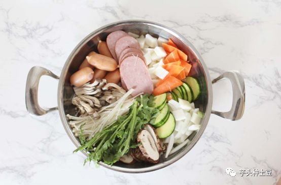 (大蔥,蘿卜,南瓜,大蔥,茼篙),除了這些,韓式泡菜,年糕,拉面或者土豆都非常適合放到部隊火鍋里煮