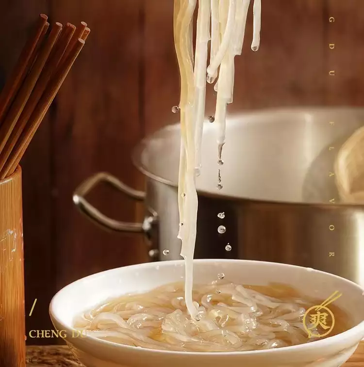 據了解,錦里古街的濕粉酸辣粉工藝,結合了成都當地傳統手工漏粉工藝,歷經原料挑選、清洗、磨漿、過濾、沉淀、打芡、 漏粉等多道工藝。最終開發出了最大程度還原傳統酸辣粉工藝的一種新的生產漏粉工藝,生產出了最大程度還原成都餐館的還 原產品。