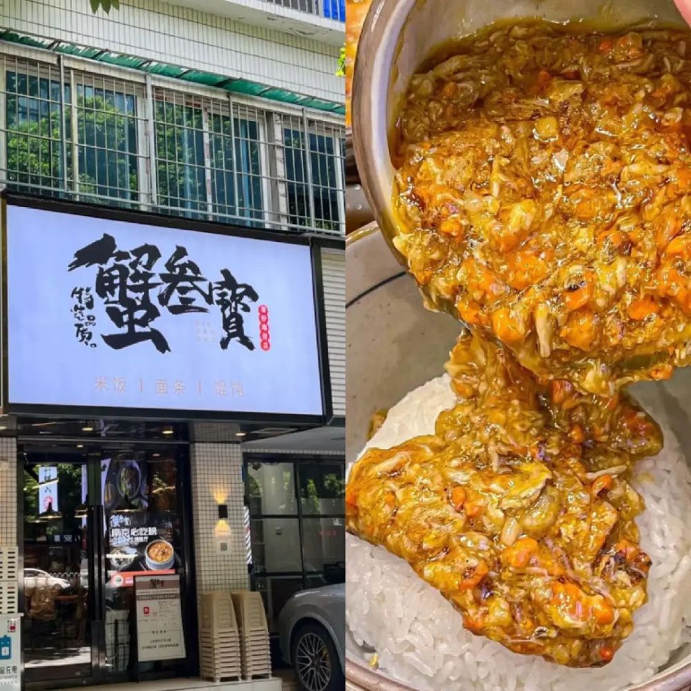 還有2023年格外流行的蟹黃拌飯,蟹柚記蟹黃拌飯是近兩年才成立的拌飯品牌,據其社交平臺賬號介紹,目前門店規模據達到400+家左右。同賽道的蟹三寶蟹黃撈飯人均消費高達100元左右,但也是上海等地的排隊王。