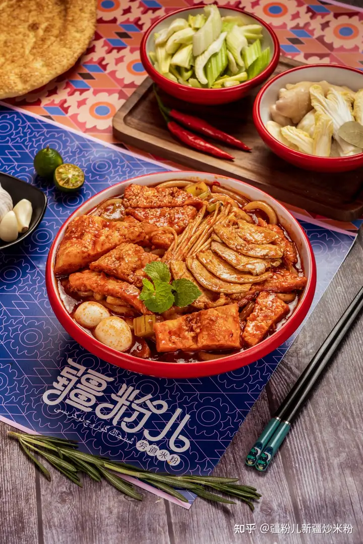 除了可以更換的配菜,疆粉兒還創新了更多的菜品,融合了新疆特色與本土食客愛好,可以選擇炒寬粉、炒馕餅、炒年糕,不僅如此還可以多主食混炒,既然眾口難調,那就做遍眾味,讓每一位進店的食客都可以選擇到自己喜歡的菜品。這美味又上頭的滋味相信每個人都會欲罷不能!