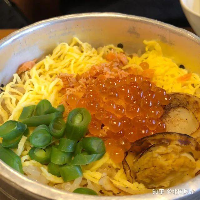 這鍋里的米飯一看就是后放入的,不是原鍋煮的。鮭魚,也就是三文魚,不是很新鮮。