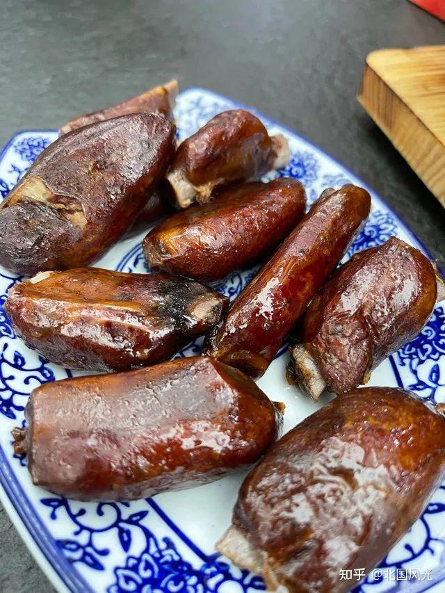 每次上傳照片都要翻找好多頁才能找到去年的照片,很考驗我的耐心和毅力。但我愿意給這個菜單獨開一樓。這個菜真的沒在別的地方吃過了,菜名記不清楚了,好像叫美人指,把臘排骨放入腸衣里,一掃老臘肉干柴般的口感。咬一口汁水橫流,肉質鮮嫩,唇齒留香。