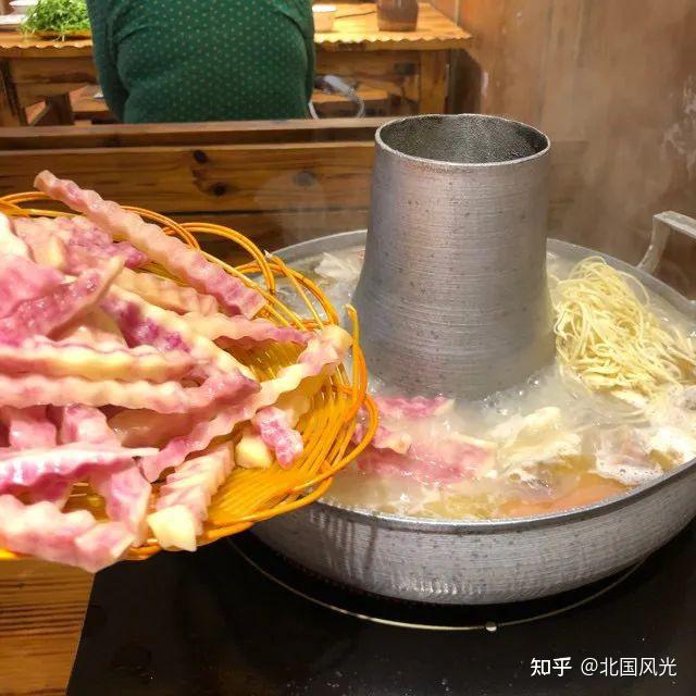 麗江第二天打車去市場,想看看當年那家店還在不在了,當年的店是個大排檔水準,坐馬扎小桌那種。12年的時光,早已時過境遷,可以想見是肯定找不到的了,所幸市場里還有幾家臘排骨,選了一家來吃,這頓不錯,肉質和味道都是上乘,還送了幾樣涮菜,其中紫心土豆很稀奇,涮來品嘗一下。