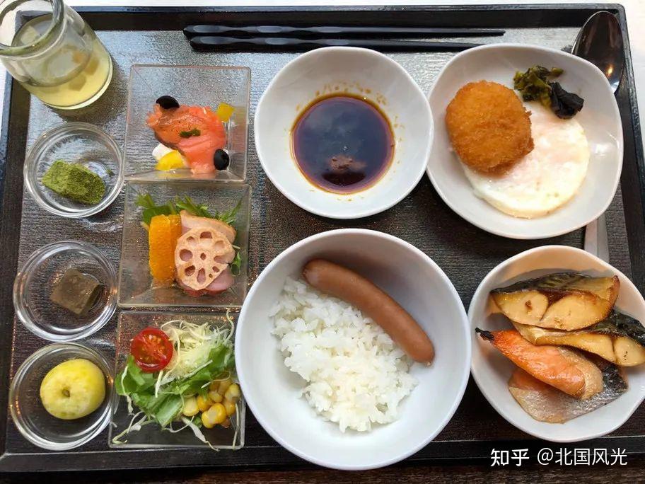 日本大米非常不錯,自助早餐里煎魚品種很多,魚肉也很新鮮。我把煎魚搗碎拌到飯里,淋上一點點醬油,一碗原汁魚肉拌飯就好了,營養均衡,滋味一絕。