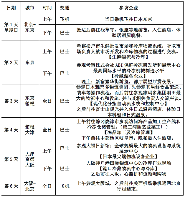赴日冷鏈考察重要信息